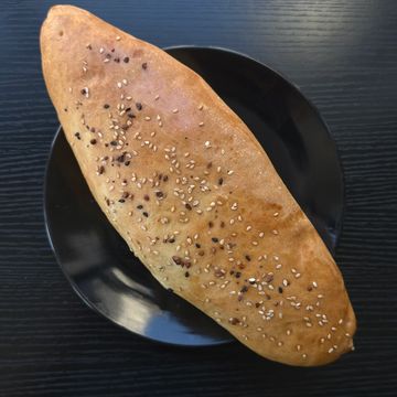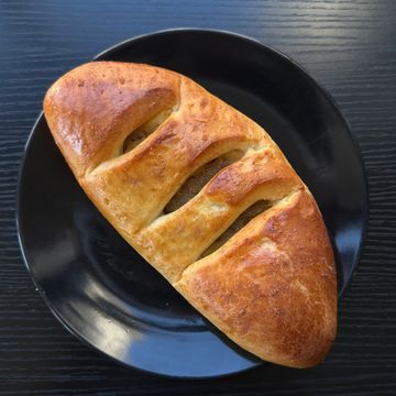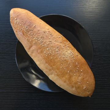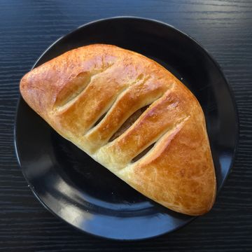 Bread roll filled with cream cheese, jalapeños, and Black Forest ham