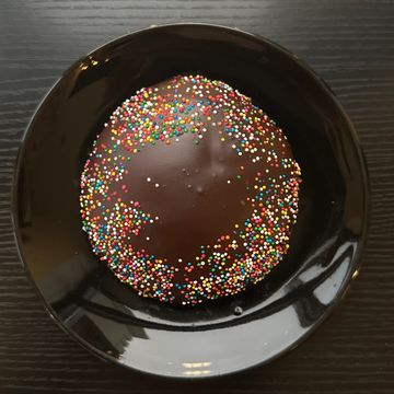 Also similar to the concha, the calvo is topped with a chocolate ganache and rainbow sprinkles